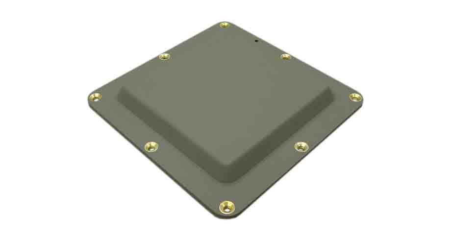 The N100-6 footprint is 7 inches by 7 inches and provides a four-element antenna aperture with seven outputs similar to larger arrays. It is designed to receive right-hand circularly polarized (RHCP) signals and couples the radio frequency signal to the antenna electronics (not supplied by L3Harris) via seven coaxial cables.